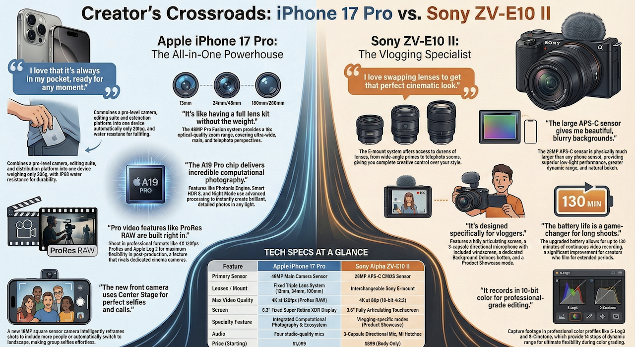 Sony ZV-E10 II vs. iPhone 17 Pro: Why the Best Vlogging Camera Isn't a Phone