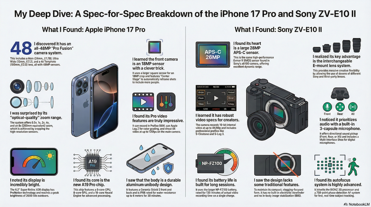 This raises the ultimate dilemma for every creator, from aspiring YouTubers to seasoned filmmakers: is the all-in-one convenience of a super-phone enough? Or does a dedicated camera, built from the ground up for a single purpose, still hold the key to better content? The goal of this post is to break down the real-world differences between the iPhone 17 Pro and the new Sony ZV-E10 II to help you make an informed choice for your creative journey.