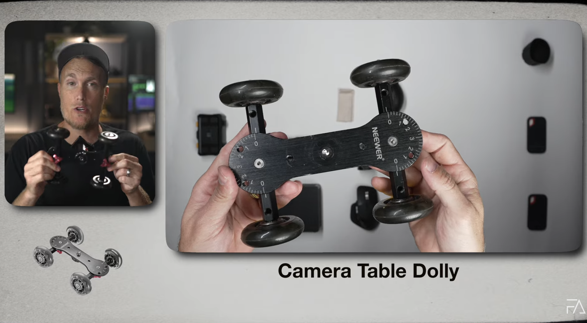 A camera dolly for video lets you roll your camera across flat surfaces for clean, professional movement.