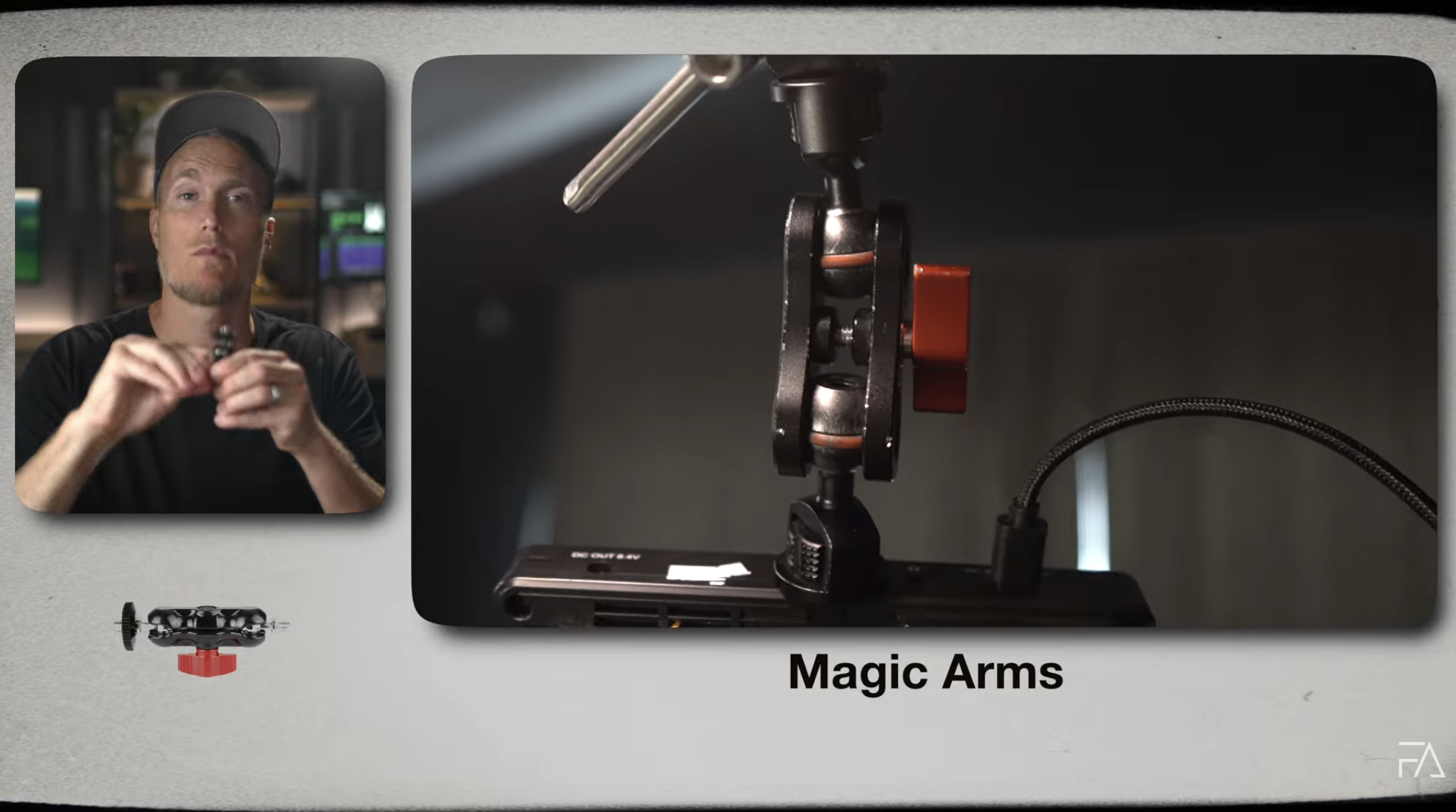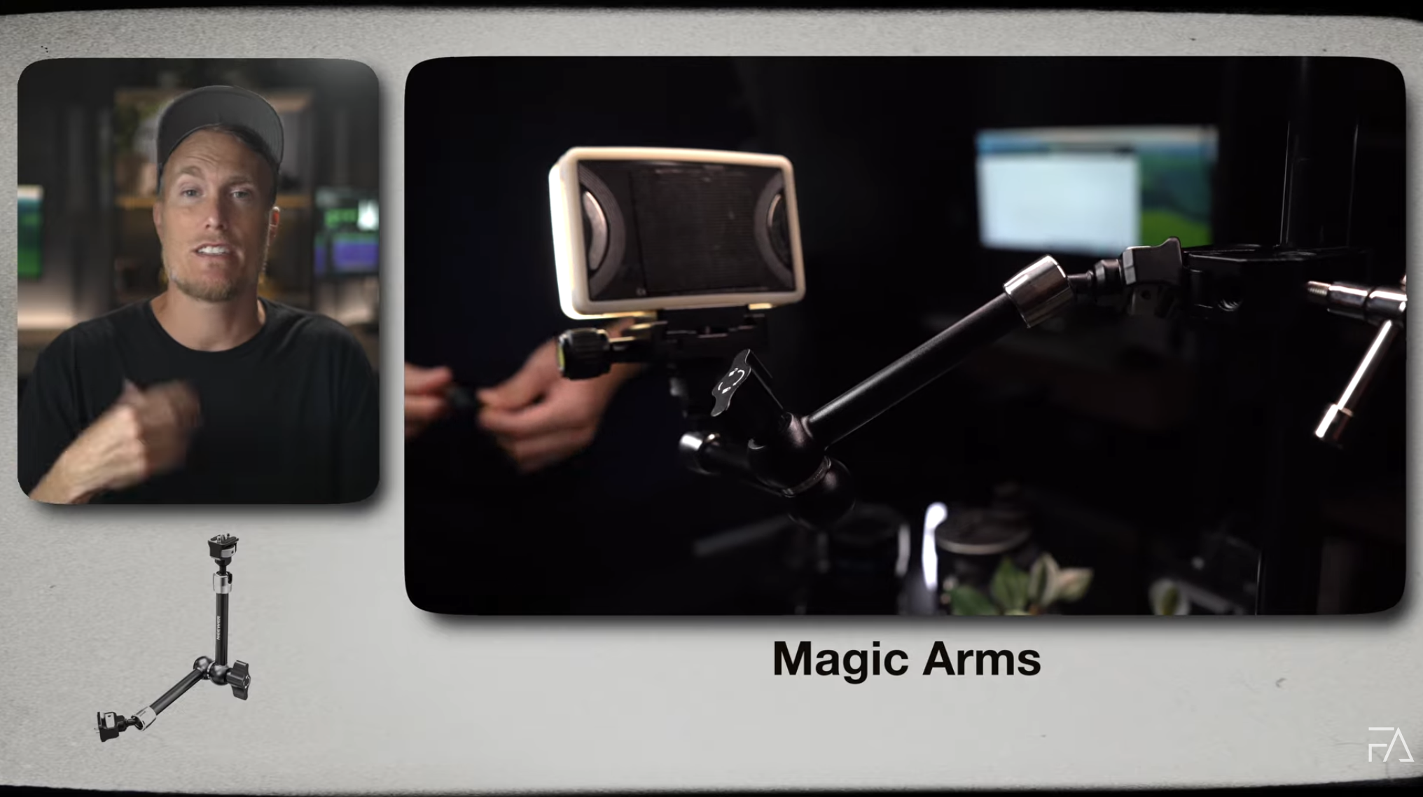 A magic arm for camera accessories lets you position lights, monitors, or microphones exactly where you want them. Lock it in place and it stays solid.