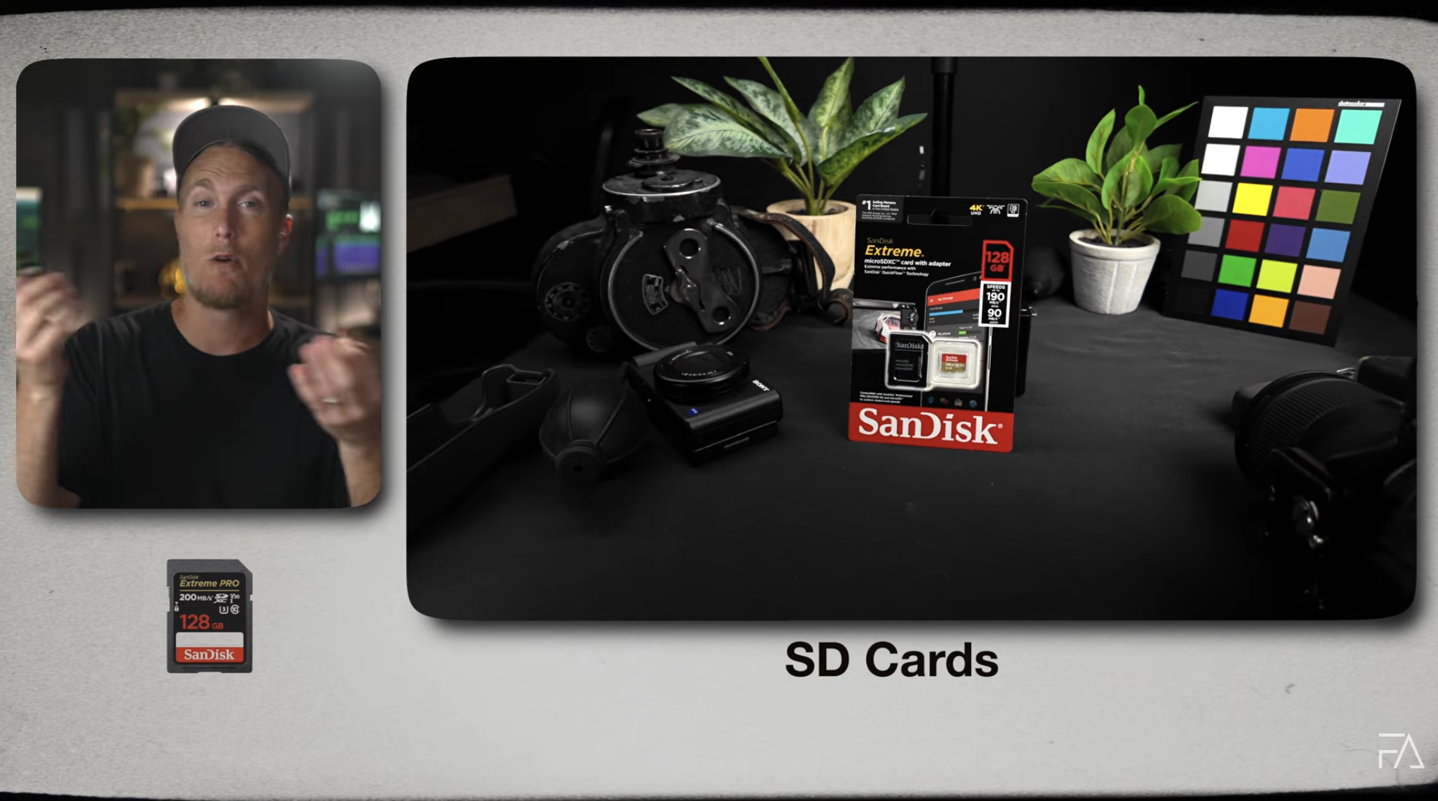 I recommend SanDisk SD cards for video and photography because they’ve never failed me. 128GB is the sweet spot for most creators.